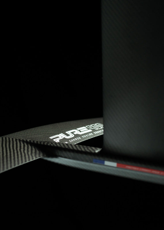 The foil is directly moulded with the fuselage, in one piece, allowing a continuity of the structural carbon fibres. This process gives increased strength, rigidity and lightness to the piece by eliminating the screw connection. The feeling between the rider and the foil is direct, rider and foil becoming one, developing more feel and control. The hydrodynamic flow is optimal, without turbulence, pure.