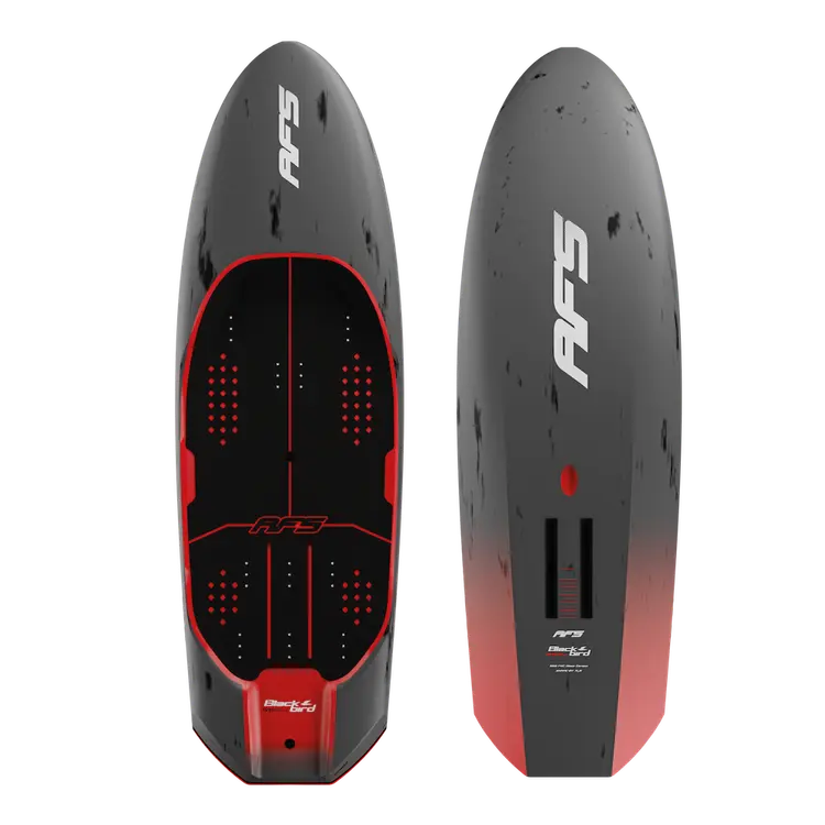 At AFS Advanced, each board is the result of years of innovation, rigorous testing, and a relentless pursuit of uncompromising performance. The new **BlackBird Mid-Length** fully embodies this spirit. A true fusion of our various expertise in shaping and inspired by the design of our legendary BlackBird, the **BlackBird Mid-Length** combines innovative design and optimized features for a completely hybrid foiling experience, but never at the expense of performance. This type of cross shape is revolutionizing wing riding today and sits between our Prone, Wing, and Downwind boards.